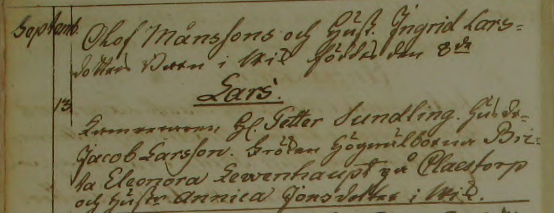 Sonen Lars föds 1780-10-10