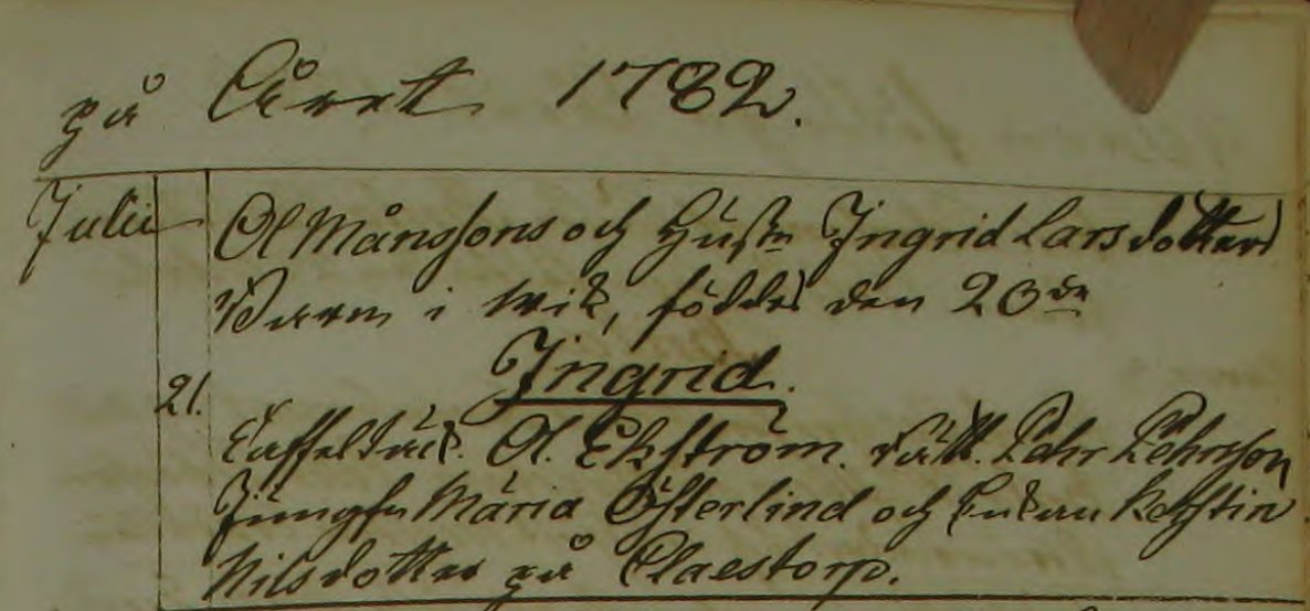 1782-07-20 Dottern Ingrid föds