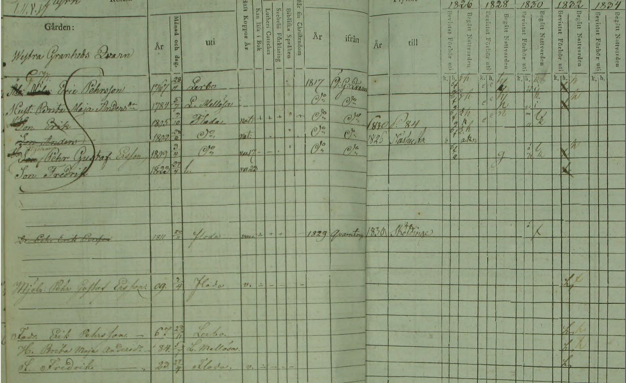Sonen Anders flyttar till Näshulta 1830 Sonen Erik